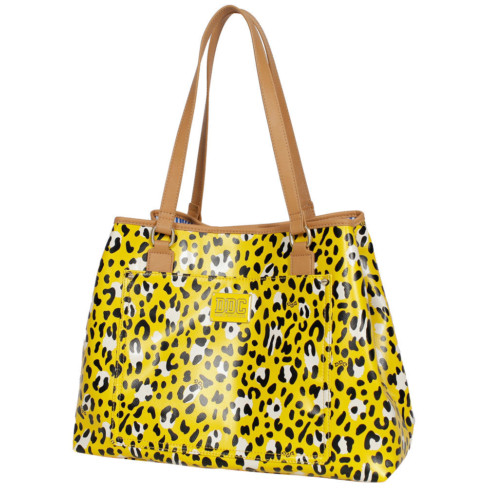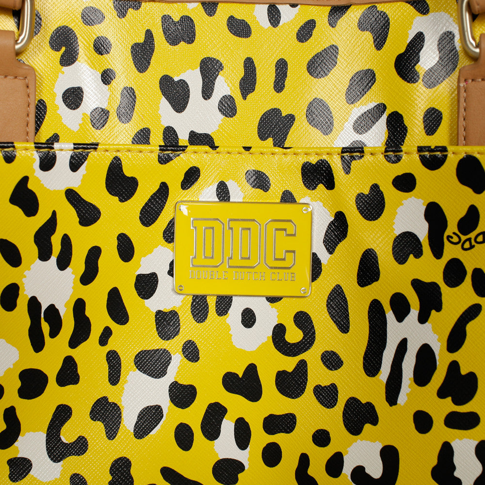Duble Dutch Club's handbags are a great accessory for any occasion 15.75" x 5.7" x 12.4" 1.14lbs / 0.52kgs 100% PU Top Carry Handle Front Cinch Pocket Large Main Compartment Fashion Print Internal Lining