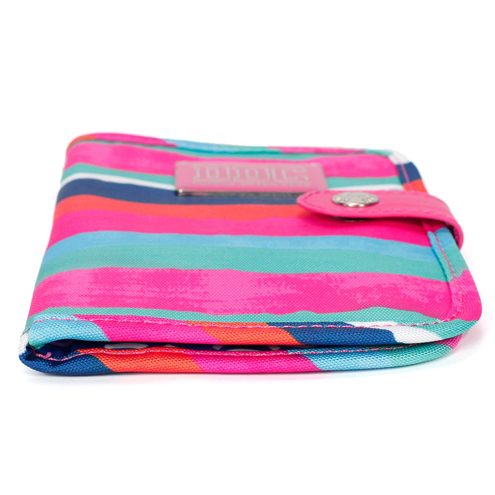 Double Dutch Club's passport holder provides fashionable protection for important documents. 5.15" x 7.30" 0.23lbs / 0.10kgs 100% Polyester Passport Holder Snap Main Opening Back Zippered Compartment